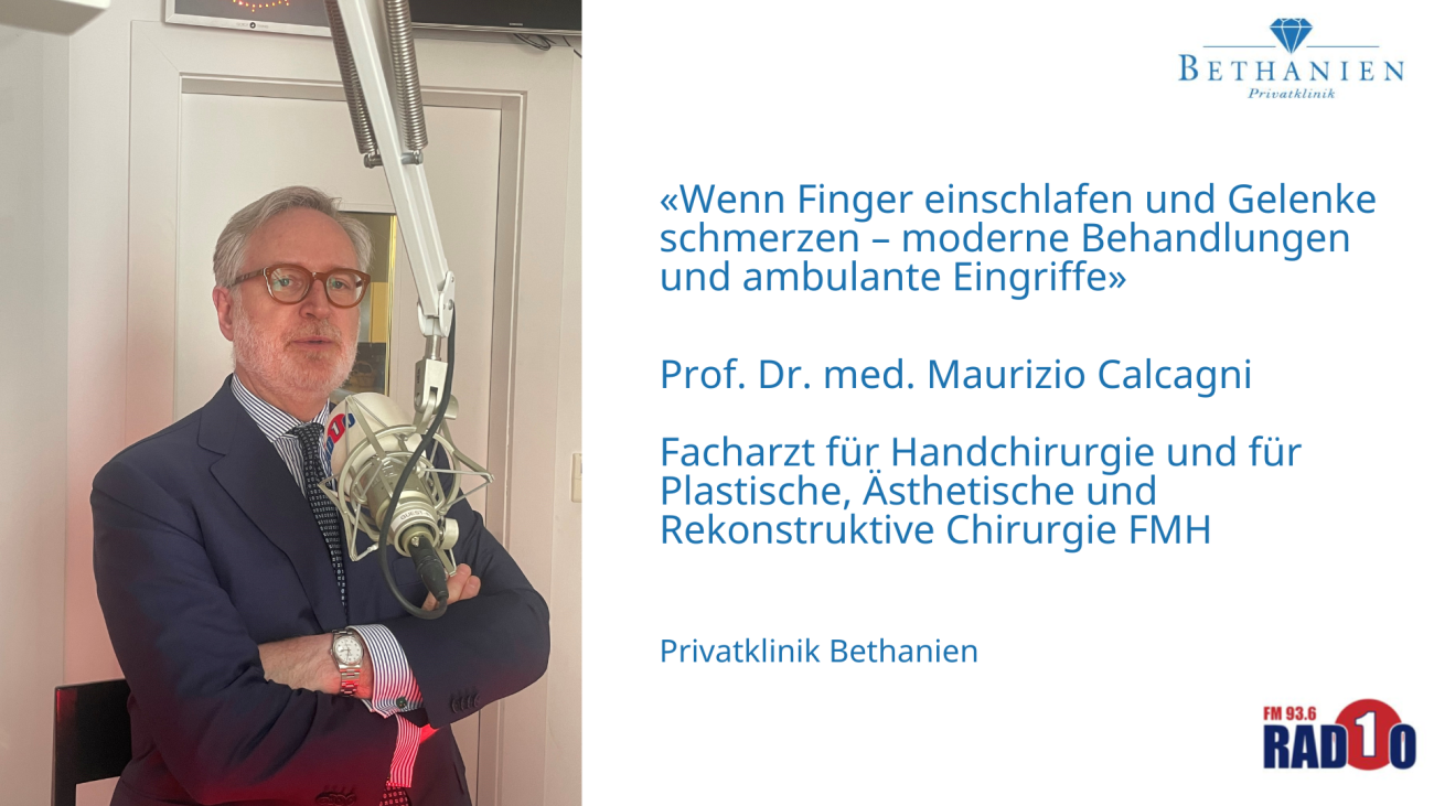 In der neuen Folge spricht Prof. Dr. med. Maurizio Calcagni, Facharzt für Handchirurgie sowie für Plastische, Ästhetische und Rekonstruktive Chirurgie FMH, über Beschwerden, die viele kennen und oft unterschätzen. Was bedeutet es, wenn die Finger taub werden, die Hände nachts kribbeln oder die Handgelenke schmerzen?