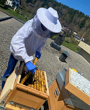 Dans une démarche de durabilité au sein du groupe Swiss Medical Network, nous avons pris une initiative innovante : l'installation de ruches sur le toit de notre clinique, grâce à notre apiculteur expérimenté, Rafaël Klock. Dans un avenir proche, nous prévoyons de mettre en place diverses activités captivantes afin de sensibiliser nos patients et collaborateurs aux abeilles et au miel, ainsi que de favoriser leur bien-être.